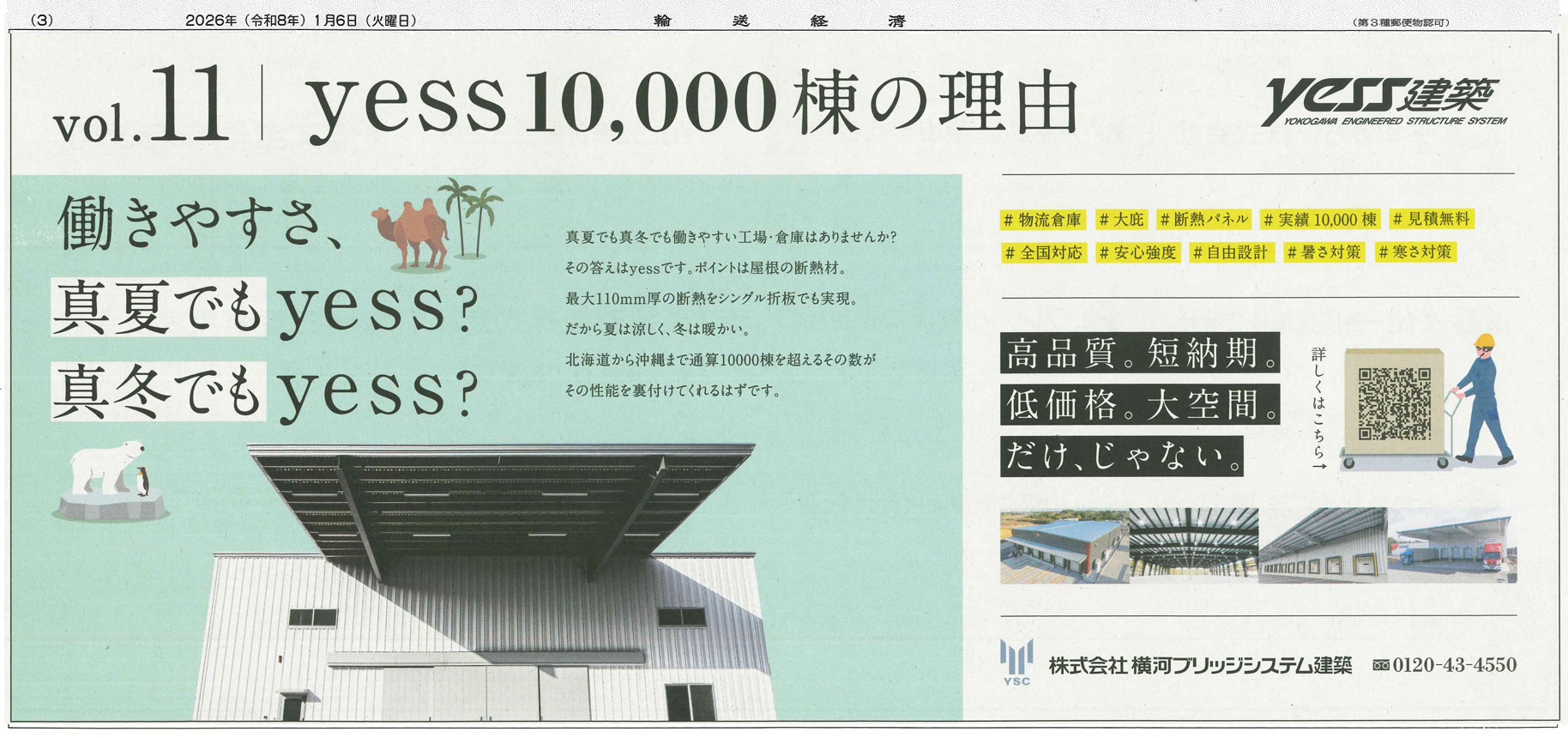 専門紙「輸送経済新聞」に横河システム建築の広告が掲載されました