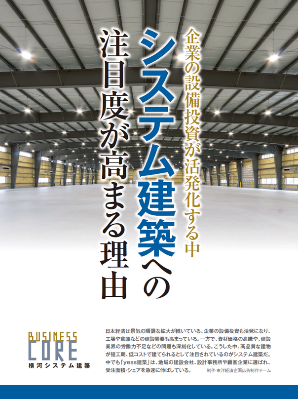 9月25日に発売されました「週刊東洋経済」の「ビジネスコア」にyess建築が掲載されました。