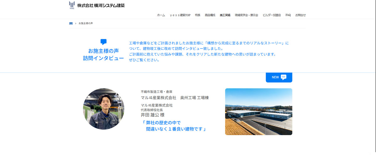 建設のご計画から竣工までの経緯、建物を使用したご感想など、お施主様の「生の声」を掲載しています。