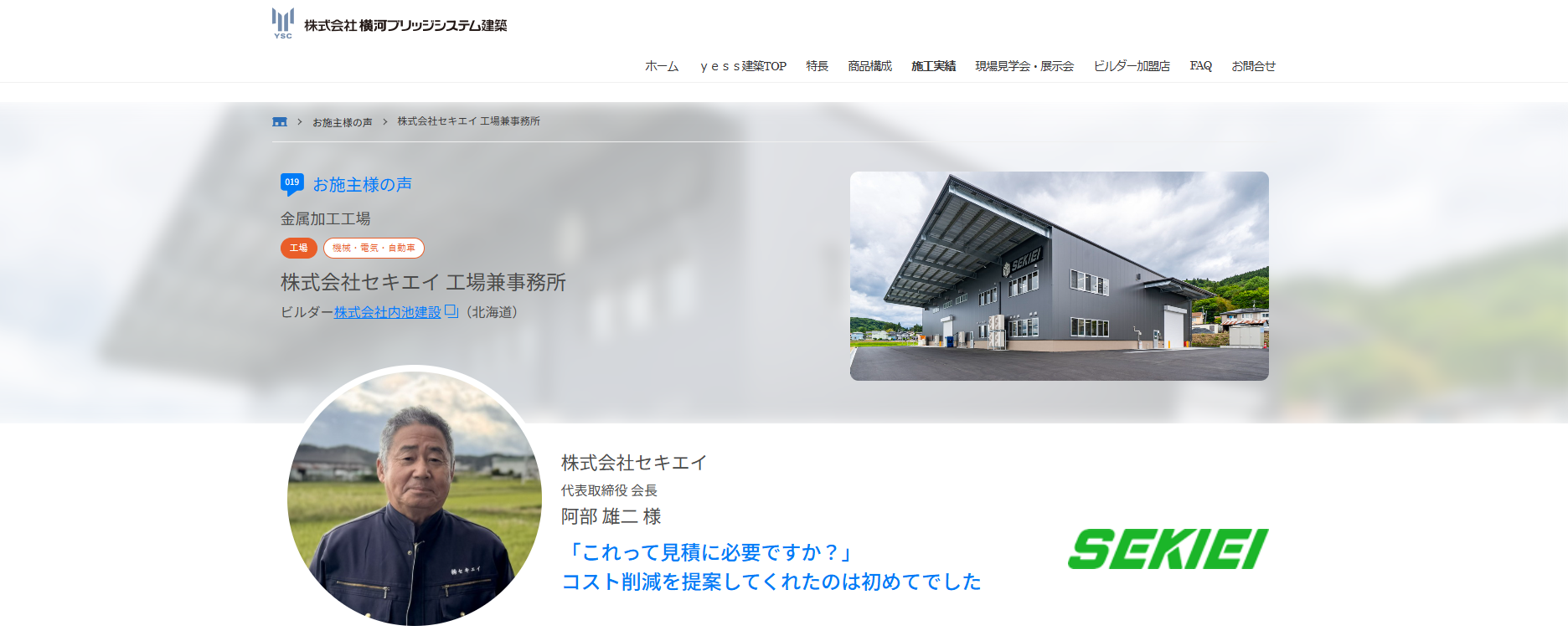 今回のお施主様は、岩手県一関市に本社を置く金属製品製造業、株式会社セキエイ様です。「内池建設さん(yess建築ビルダー)にお願いして本当に良かった。」と言う、建築計画についてお話いただきました。是非ご覧ください。