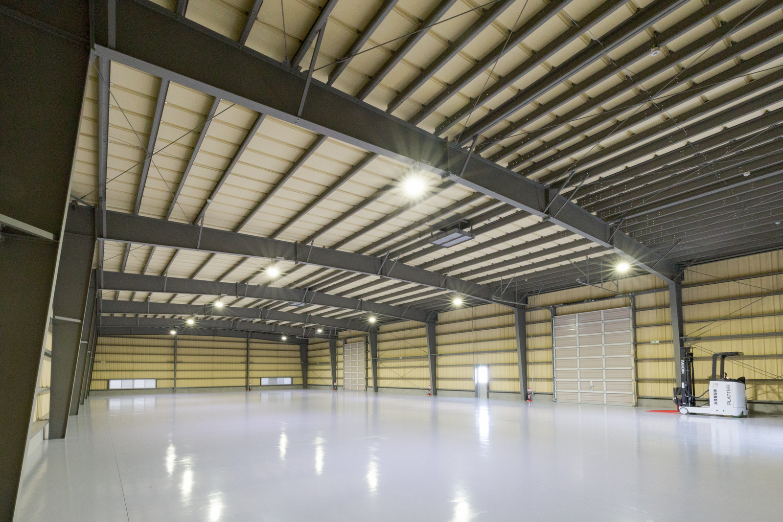 ラピッドブラスはスーパーラピッド同様に、システム建築専用工場で生産される製品のなかでも短工期かつコストパフォーマンスに優れる製品です。規格寸法仕様の製品ながら建物端部の柱間寸法を自由にすることで任意の建物寸法に対応しています。