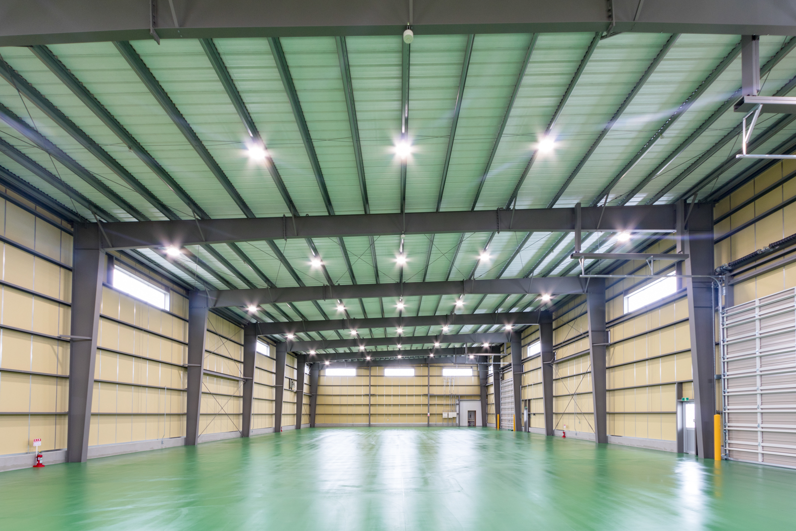 建物は、長さ50.4m x 奥行21.6m の室内無柱構造のカスタムタイプです。