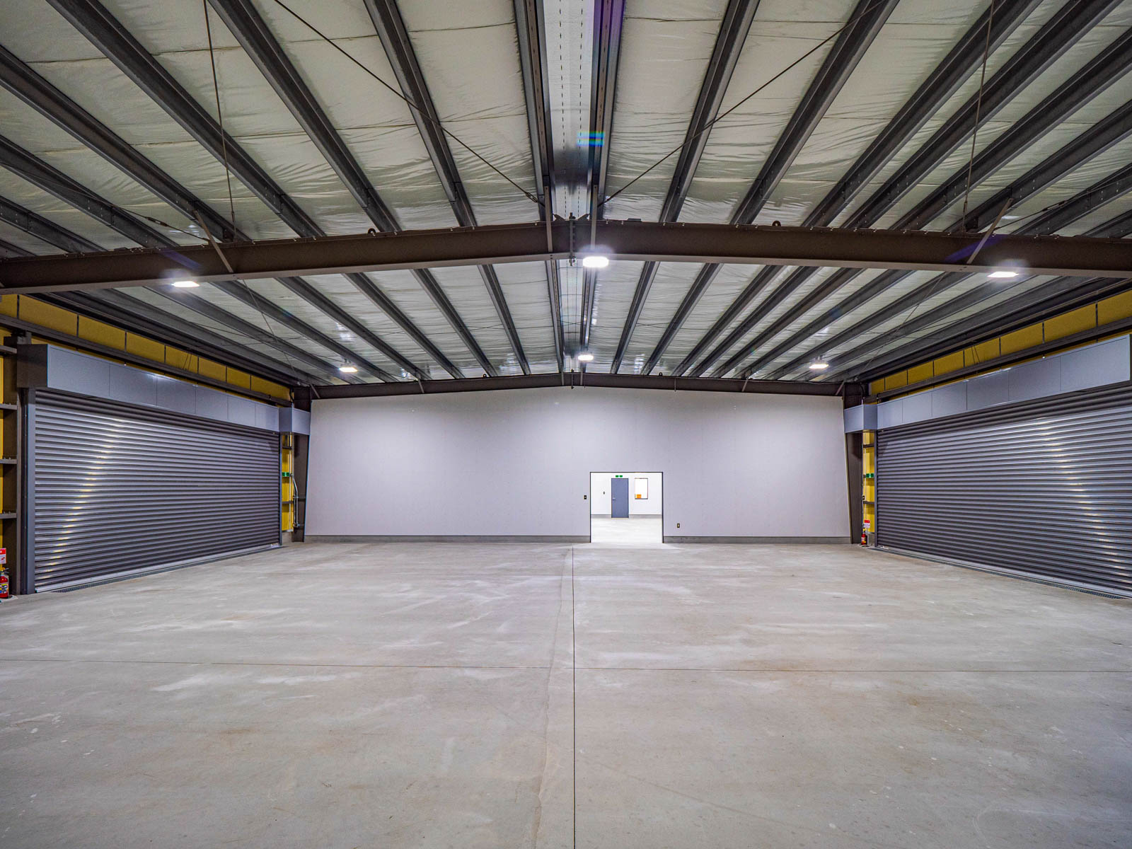大開口は、W6.2m x H3.0m と W5.6m x H3.0m の重量電動シャッターです。