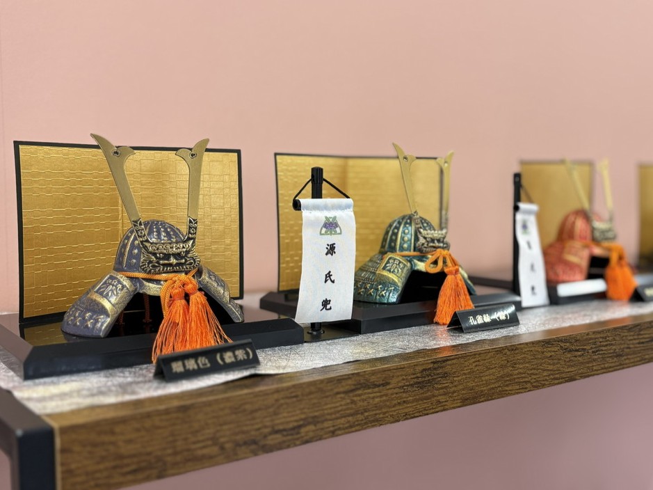 インタビューの後には、社長室でコレクションされている甲冑の兜を拝見させていただきました。ずらりと並ぶ兜からは圧倒的な存在感を感じました。