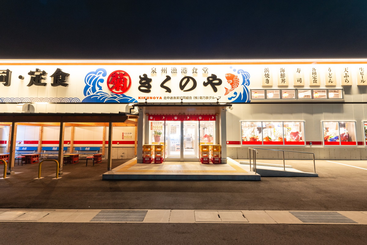 かつて毎週のように海へ出ていた大の釣り好きである社長が、趣味が高じて漁港食堂をオープンさせました。地元の新鮮な魚介類を漁港の雰囲気ごと味わえるとあり、今年(2025年)のGWは1千人を超えるお客様が押し寄せるなど、人気店となった「泉州漁港食堂 きくのや」です。