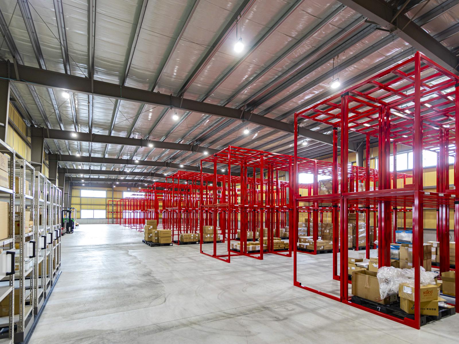 服部様:新倉庫では大手家電メーカーに納める大量のノズルを管理・保管しています。荷物の出入りが頻繁で量も膨大ですが、希望通りの大空間を実現できたので、外部倉庫の利用をやめ、一か所に集約できています。